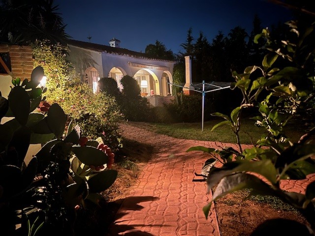 In 2023 zijn de eerste tuinpaden aangelegd. Eindelijk werd het mogelijk om van A naar B te wandelen zonder vervolgens gemaaid gras of zand aan je voeten mee naar binnen te brengen. Daar wordt over een paar weken de draad opgepakt. Nog ruim 20 vierkante meter malletjes met rood beton vullen, en de patio bij de Mongoolse poort is klaar. Belangrijker nog, Casa Silka is dan ook voor rolstoelgebruikers gemakkelijker bereikbaar.